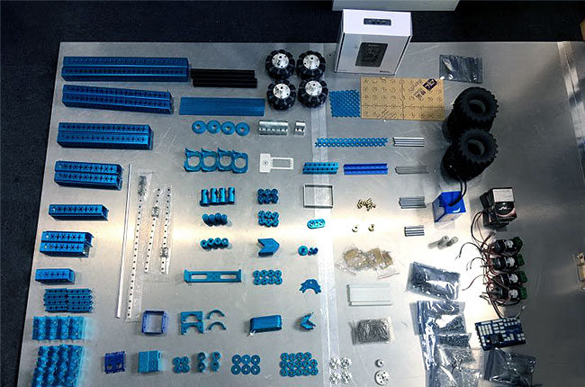 具有65種多功能結構零件。包含255個鋁合金、碳纖維等輕量化結構零件;7個雙滾珠軸承固定座;30個以上多功能結構型材,兼容90度四孔60度6孔、120度3孔等多種鏈接方式。